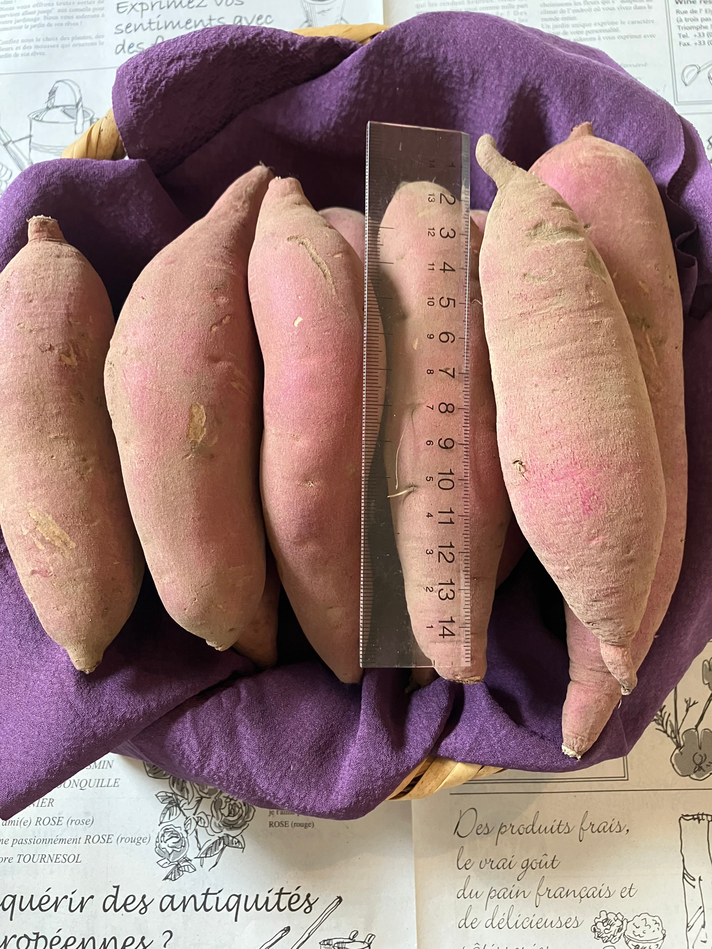さつまいもは温度16℃前後が最も適した保存環境です。軽く土を落として新聞紙に包んだ状態でお届けしますので、届いたそのままの状態でも長持ちします。直射日光を避け風通しの良い場所に保存をお願いします。